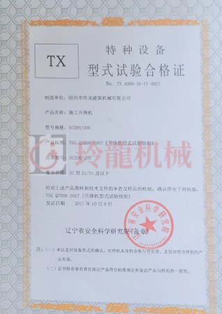 施工升降機(jī)-特種設(shè)備型式試驗(yàn)合格證